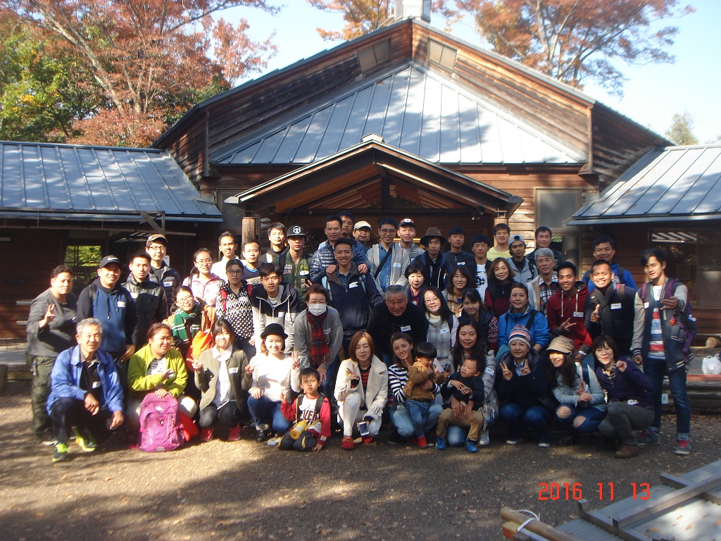 最初に参加者全員の集合写真をご覧ください。「国際交流」、「老若男女」、「和気藹々」という言葉がありますが、オリーブはまさにそのような人々の集まりです。本日も下は1歳から上は77歳まで、国籍も様々ですが、バスの中では各人が日本語で自己紹介をしながら目的地に到着しました。