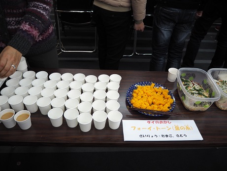 タイチームは鶏卵のあま〜い素麺「フォーイ・トーン」を用意してくれました。お祝いとして皆で食べるそうです。