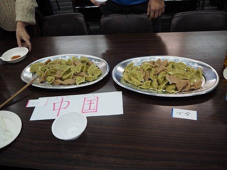 水餃子の包み方は昔の中国のお金に似せたものです。そのため、お正月のお祝いでお金持ちを願って食べるそうです。「野菜・お肉・エビなどが入って栄養も満点」と紹介してくれました。