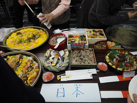 日本チームは正月にたべる特別な食べ物ということでおせち料理に込められた願いを紹介しました。